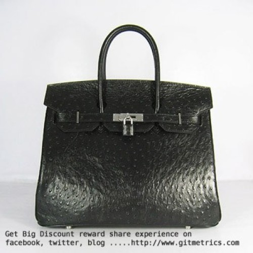 Чанта Hermes Birkin 35 см с щраусови вени, черно-сребриста