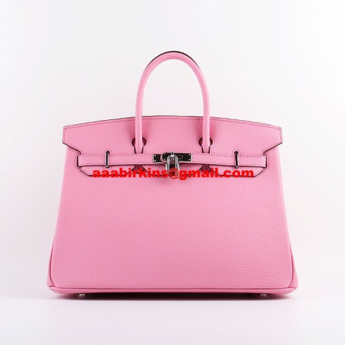 Hermes Birkin 35см Togo кожени чанти Cherry Pink Silver