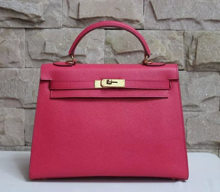 Hermes Kelly 32 см Epsom кожена чанта розово злато