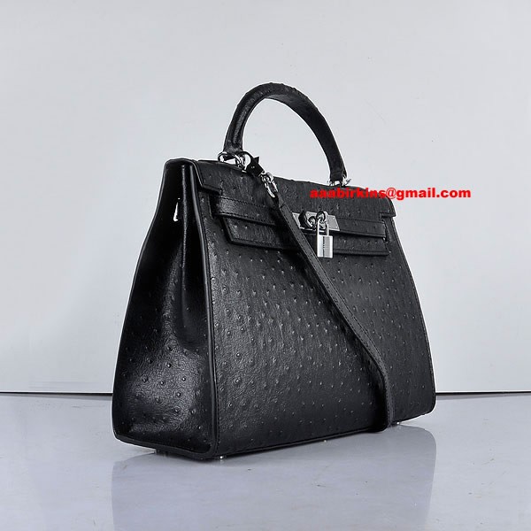 Hermes Kelly 32 см Ostrich Vein 6108 Черно Сребро