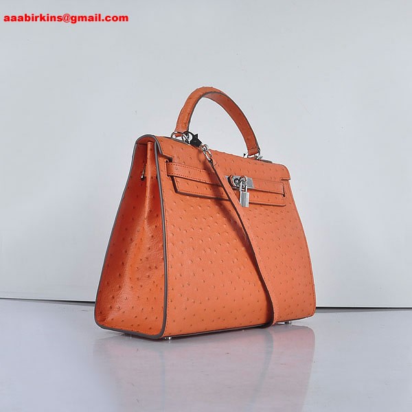 Hermes Kelly 32 см Ostrich Vein 6108 Orange Silver