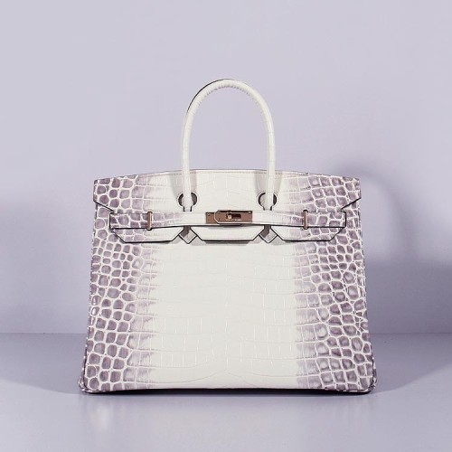 Hermes Birkin 35 см крокодилска кожа чанта сиво бяло злато