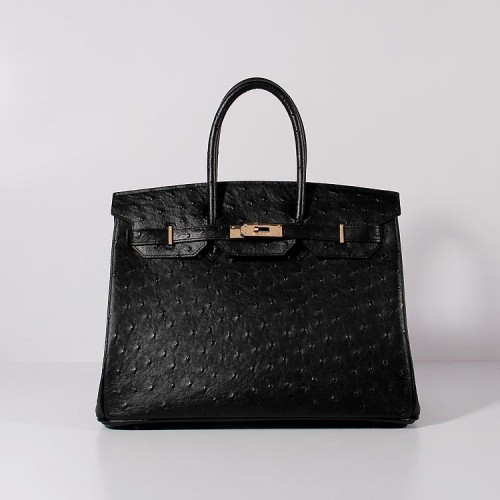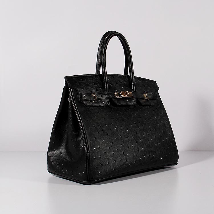 Hermes Birkin 35 см чанта от щраусова кожа черно злато