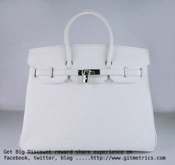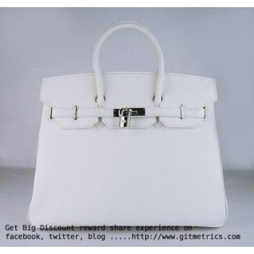Hermes Birkin 35 см Togo кожена чанта бяло-сребристо