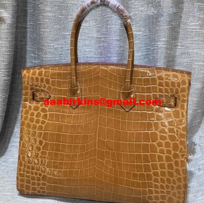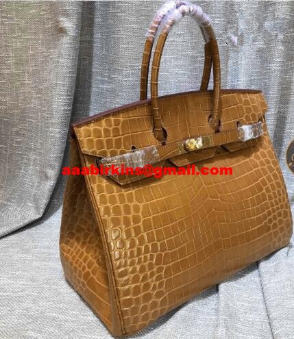Hermes Birkin 35 см чанта от крокодилска кожа, кафяво и златисто