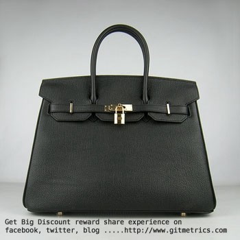 Чанта Hermes Birkin 35 см от говежда кожа, вени, черно-златиста
