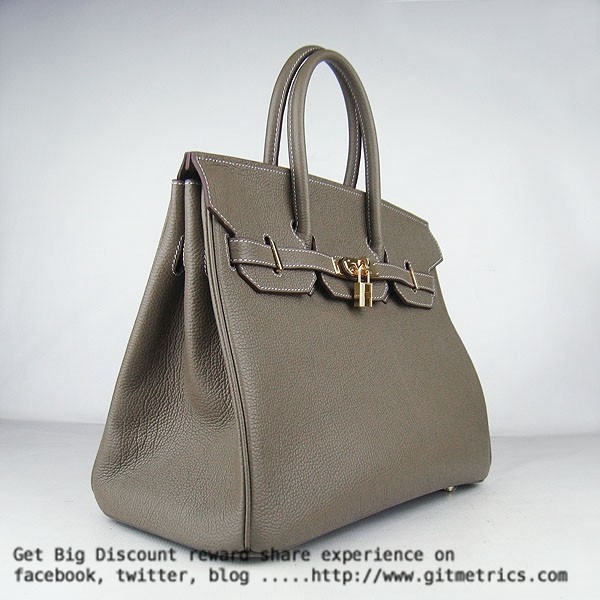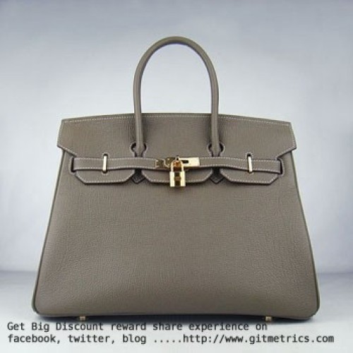 Чанта Hermes Birkin 35 см от говежда кожа, тъмно каки, златиста