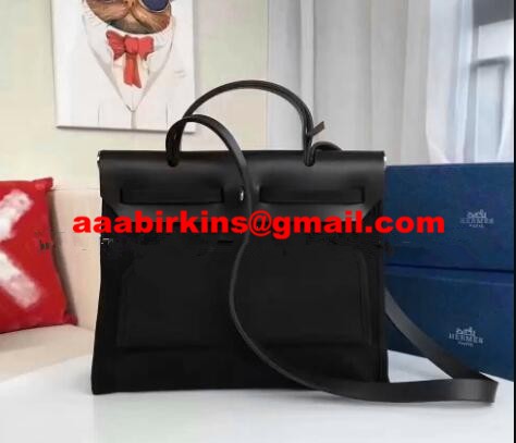 Черна платнена чанта Hermes Herbag 31 см