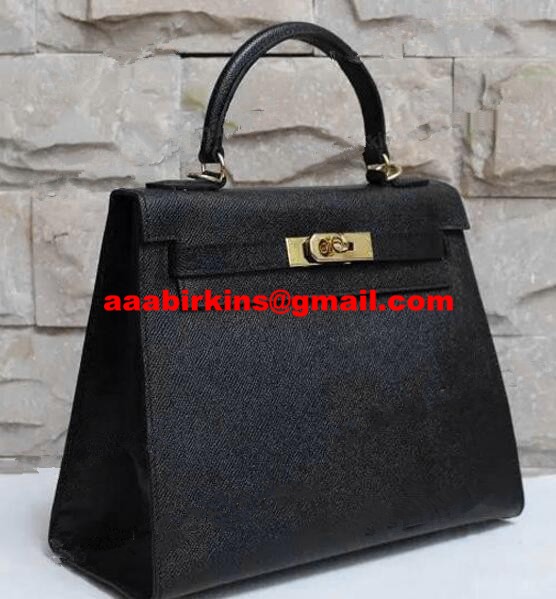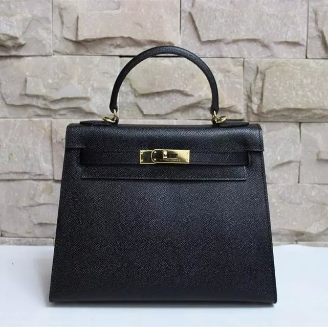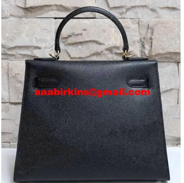 Hermes Kelly 28 см Epsom кожена чанта черно злато