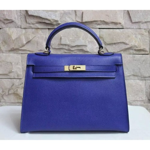 Hermes Kelly 32 см Epsom кожена чанта електрическо синьо злато