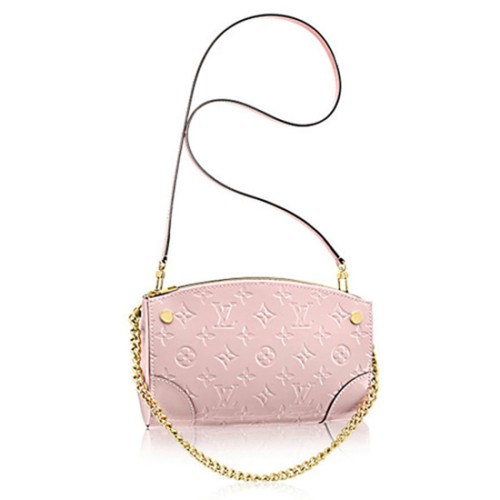 Както подсказва името ѝ, тази чанта със сигурност ще бъде любима на модните ентусиасти. Новият клъч Santa Monica от релефна лачена телешка кожа Monogram Vernis може да се използва както като градска чанта, така и като вечерно джобче. Прикрепена към дългата кожена каишка, тя е чанта през рамо за носене със свободни ръце; свалете каишката за стил през деня и вечерта: чанта през рамо с верижка. Изискани детайли в стил „историческо наследство“ - плоски кожени ъгли, златни главички на пирони - фино напомнят за исторически куфари Vuitton.