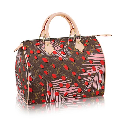 Емблематичните за Палм Спрингс палми наподобяват монограмна джунгла... Този освежаващ и радостен модел съчетава стилна тема с палми от колекцията Cruise 2016 и точки, наподобяващи диви и тропически животни, преминаващи през палмови листа. Speedy 30 съчетава емблематичния монограм с лек и женствен принт. Дива и готина, тя е идеална за модерен и ярък летен стил.