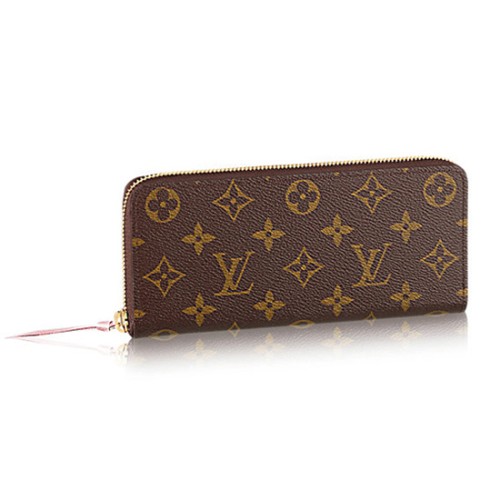 Запознайте се с портфейла Clemence, компактен, но с голям капацитет и в елегантно, практично монограмно платно. И все пак игривата женственост е част от чара му с ярко оцветената подплата и кожения цип.