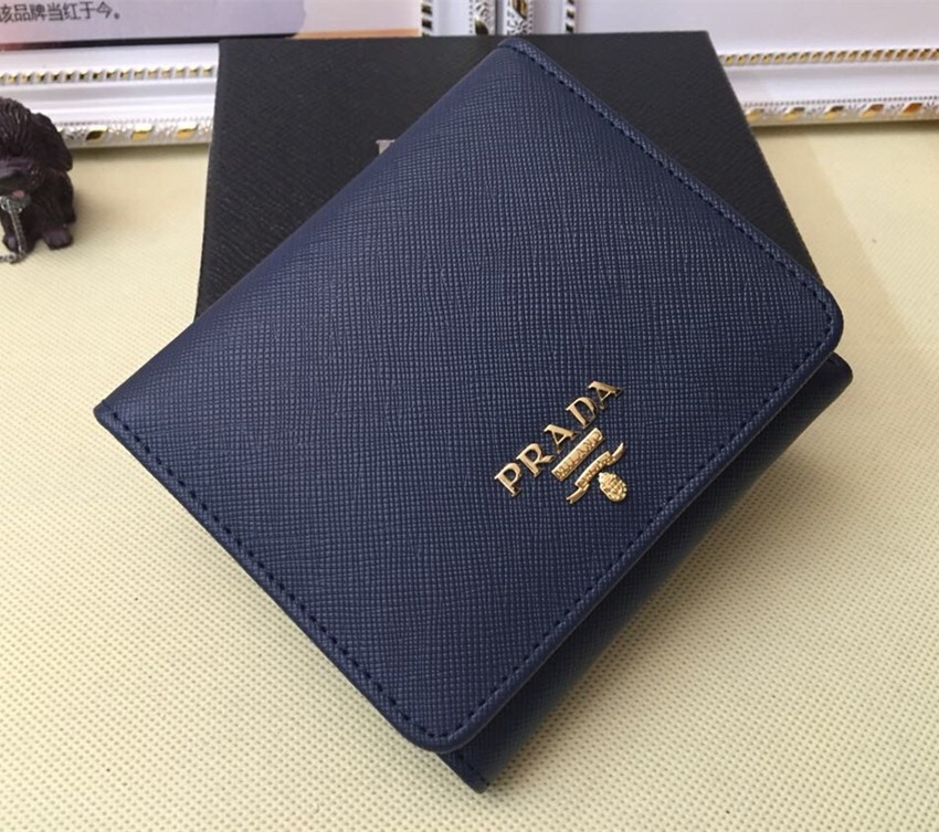 Портфейли Prada 1M0176 от сафианова кожа в тъмносиньо