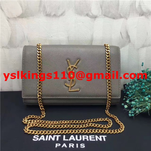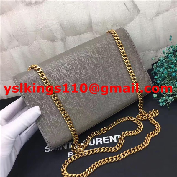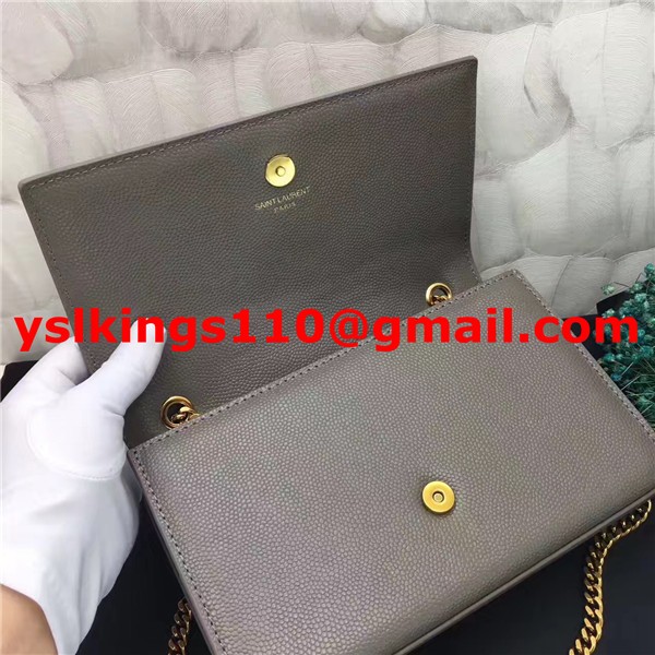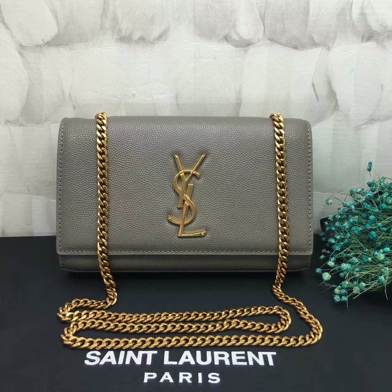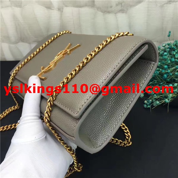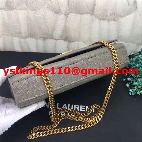 Чанта от кожена верижка YSL Caviar 22 см, сиво-златиста