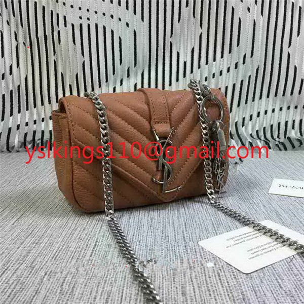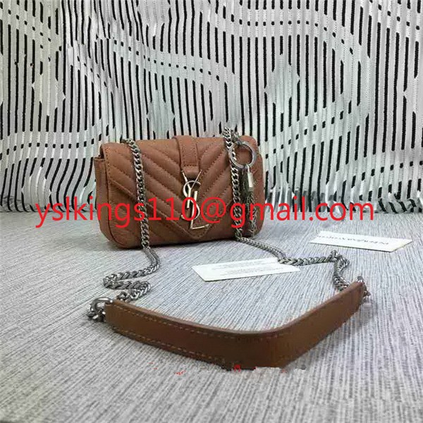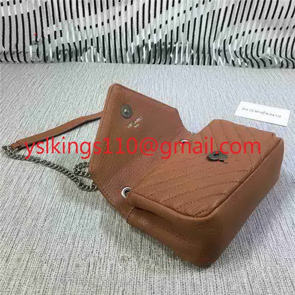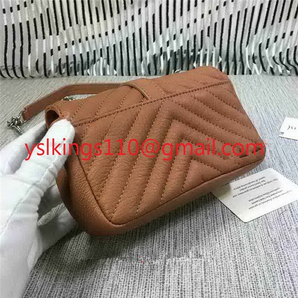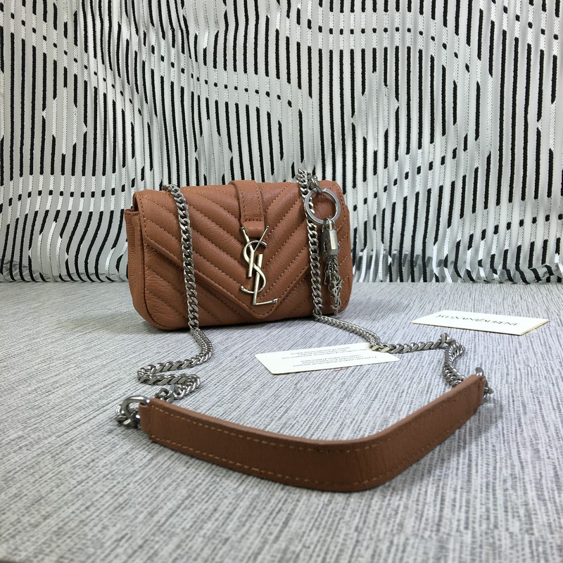 YSL Малка чанта-плик с верижка, козя кожа, кафява, 18 см