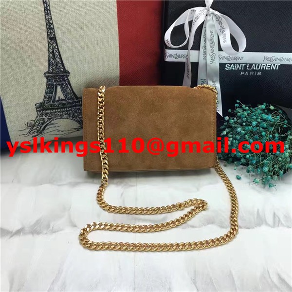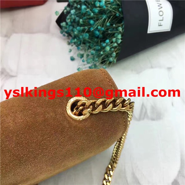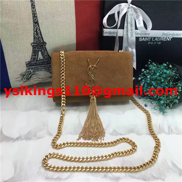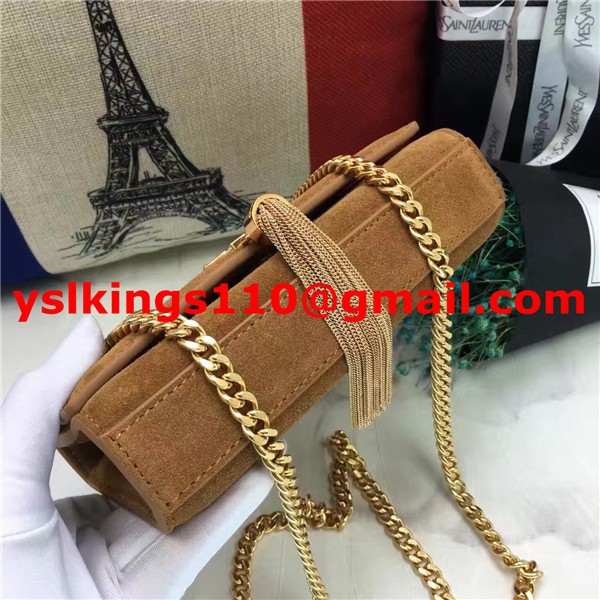 YSL Малка чанта с пискюли, 17 см, велурена, цвят камила
