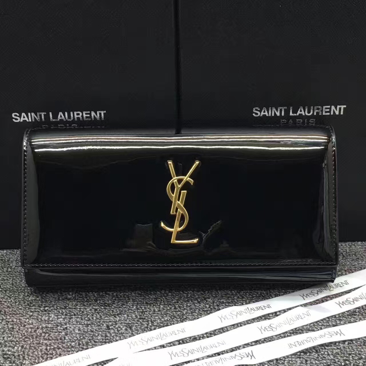 YSL Малка чанта-плик с верижка, козя кожа, кафява, 18 см