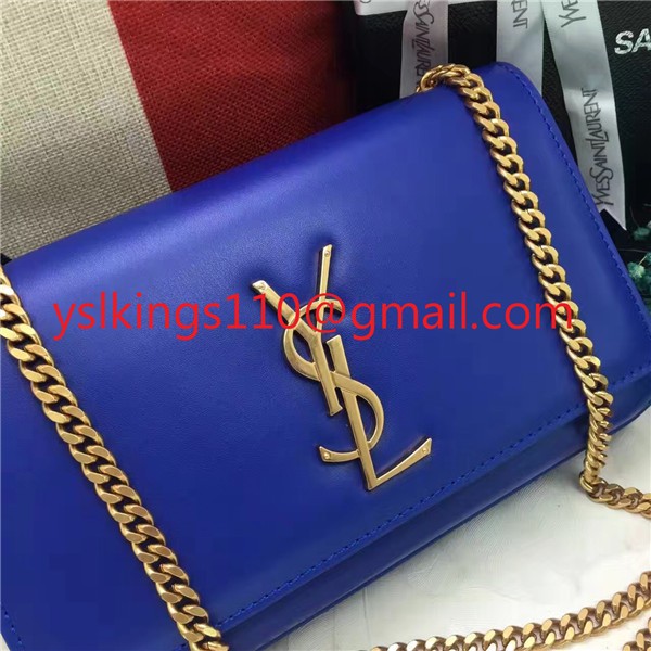 Чанта от гладка кожа с верижка YSL 22 см, синя
