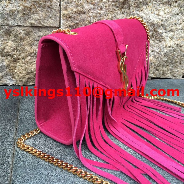 Чанта YSL от велур и кожа с пискюли 22 см, розова
