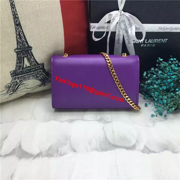 YSL Малка кожена чанта с верижка и пискюли 17 см, лилава